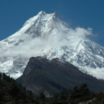 Thonbuche Kharka :: Manaslu with the usual cloud, zoomed
