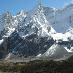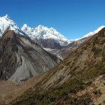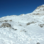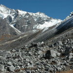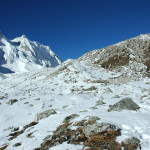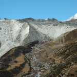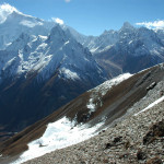 Larkya La approach :: on the side morraine, Larkya Peak slopes