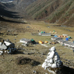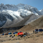 Bimtang Glacier morraine :: industrial trekking tents and makeshift lodges