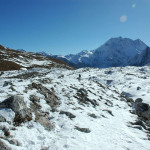 Descend from Larkya La :: three glaciers junction to form Bimtang Glacier – Kechhakyu, Ponkar and Sapudada