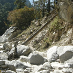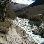 Bimtang Glacier :: the Dudh Khola outflow with the (damaged) bridge