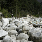 The upper Dudh Khola Valley :: the boulders in the river valley